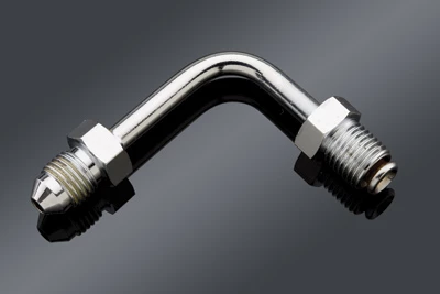 • AN-3 pipe fitting x 3/8″-24 inverted flare, 90° short style (1-1/2″ x 2″)
